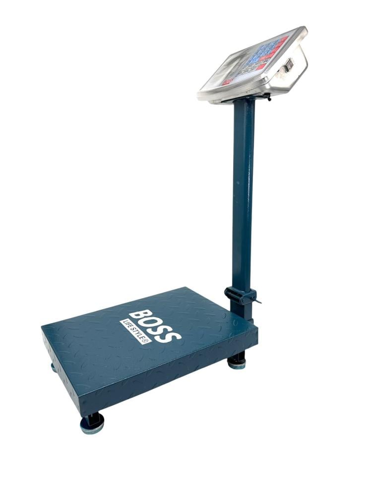 اكتشف ميزان المنصة الإلكتروني من BOSS بسعة 300 كجم مع شاشة رقمية وقاعدة حديدية قوية – مثالي للمحلات والمستودعات.