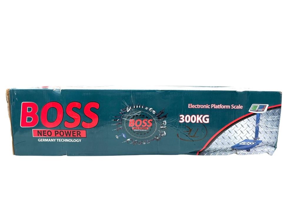 ميزان منصة إلكتروني احترافي من BOSS بسعة 300 كجم، مثالي للاستخدام التجاري والصناعي، يتميز بشاشة رقمية واضحة، لوحة تحكم ذكية، وقاعدة معدنية قوية لتحمل الأوزان الكبيرة.