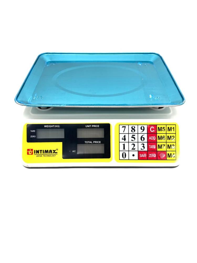 اشترِ ميزان إلكتروني INTIMAX بشاشة مزدوجة وسعة 30 كجم – دقة عالية وسهولة استخدام مثالي للبقالات والمحلات.