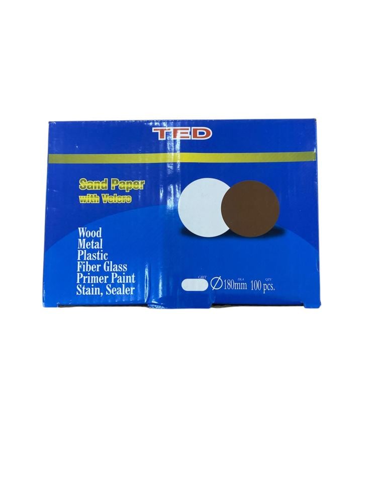 ورقة صنفرة لاصقة دائرية حبيبات P80، مناسبة لصنفرة الخشب والمعادن والبلاستيك بمقاس 180 مم.